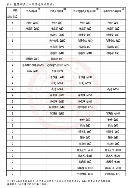 表1:乾隆朝多次入绘紫光阁功臣表:
